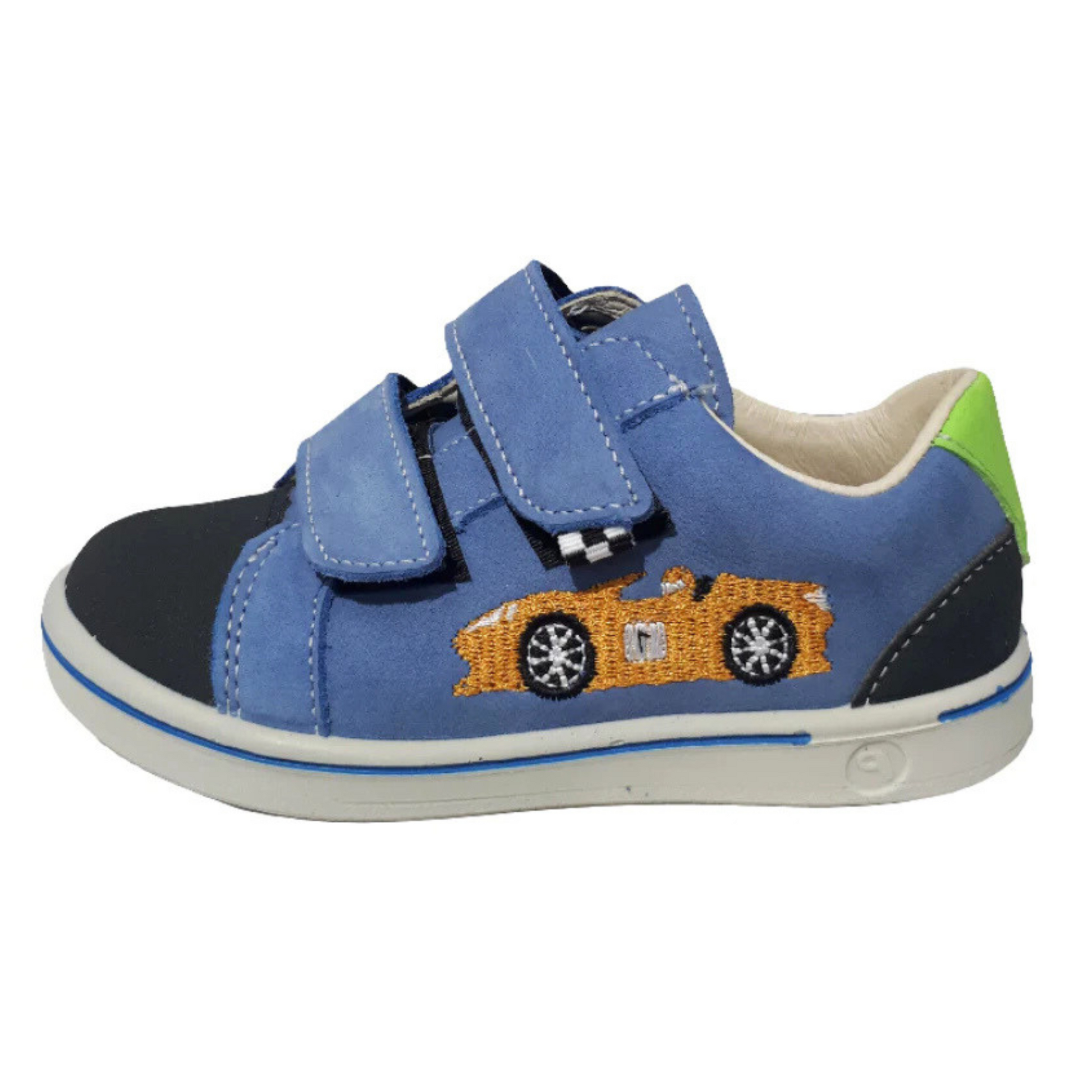 Ricosta Luigi shoes perfectly balance style and comfort for active kids. Made from premium leather, they showcase a fun embroidered racing car motif on the side, adding a playful element to their design. The double riptape straps offer a secure, adjustable fit, making them easy to slip on and off. A padded ankle cuff enhances comfort, while the removable leather footbed provides customizable cushioning. With a reinforced toe bumper for durability and a lightweight, flexible sole for natural movement, these shoes are ideal for everyday adventures.
