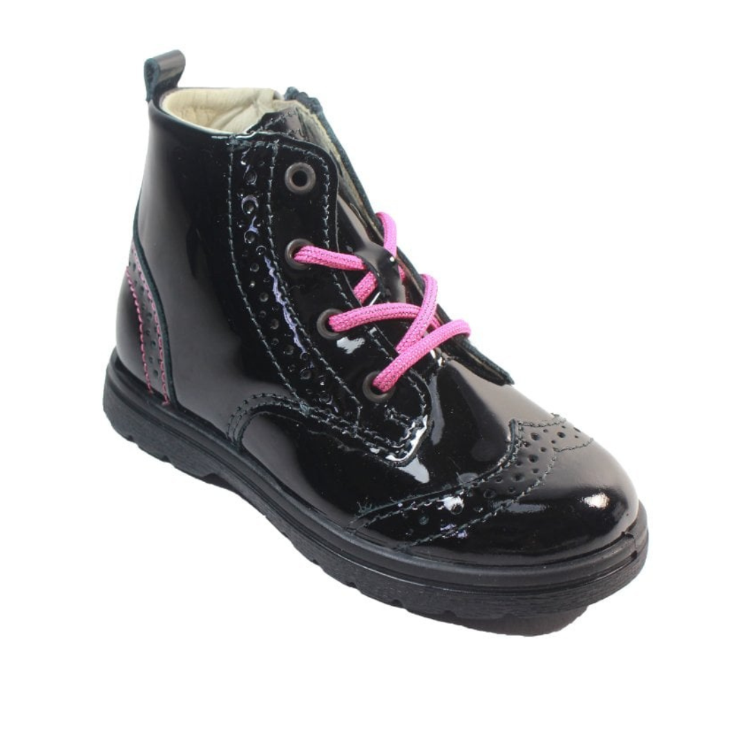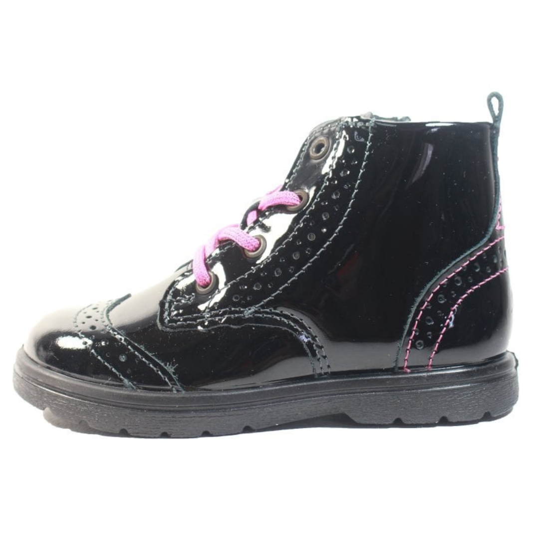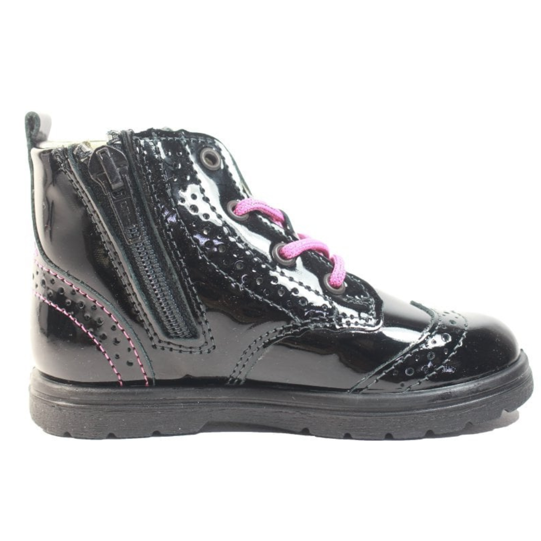 Introducing Ricosta Jemmy Boots: Stylish Brogue Ankle Boots in High-Quality Patent Leather. Featuring an Inside Zip for Easy On/Off and a Removable Cushioned Insole for Ultimate Comfort. Step into Elegance and Convenience with Ricosta Jemmy Boots.