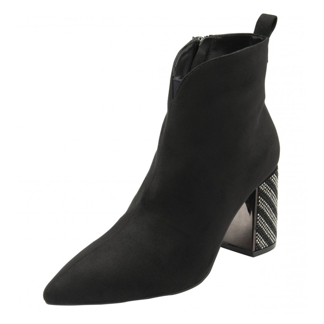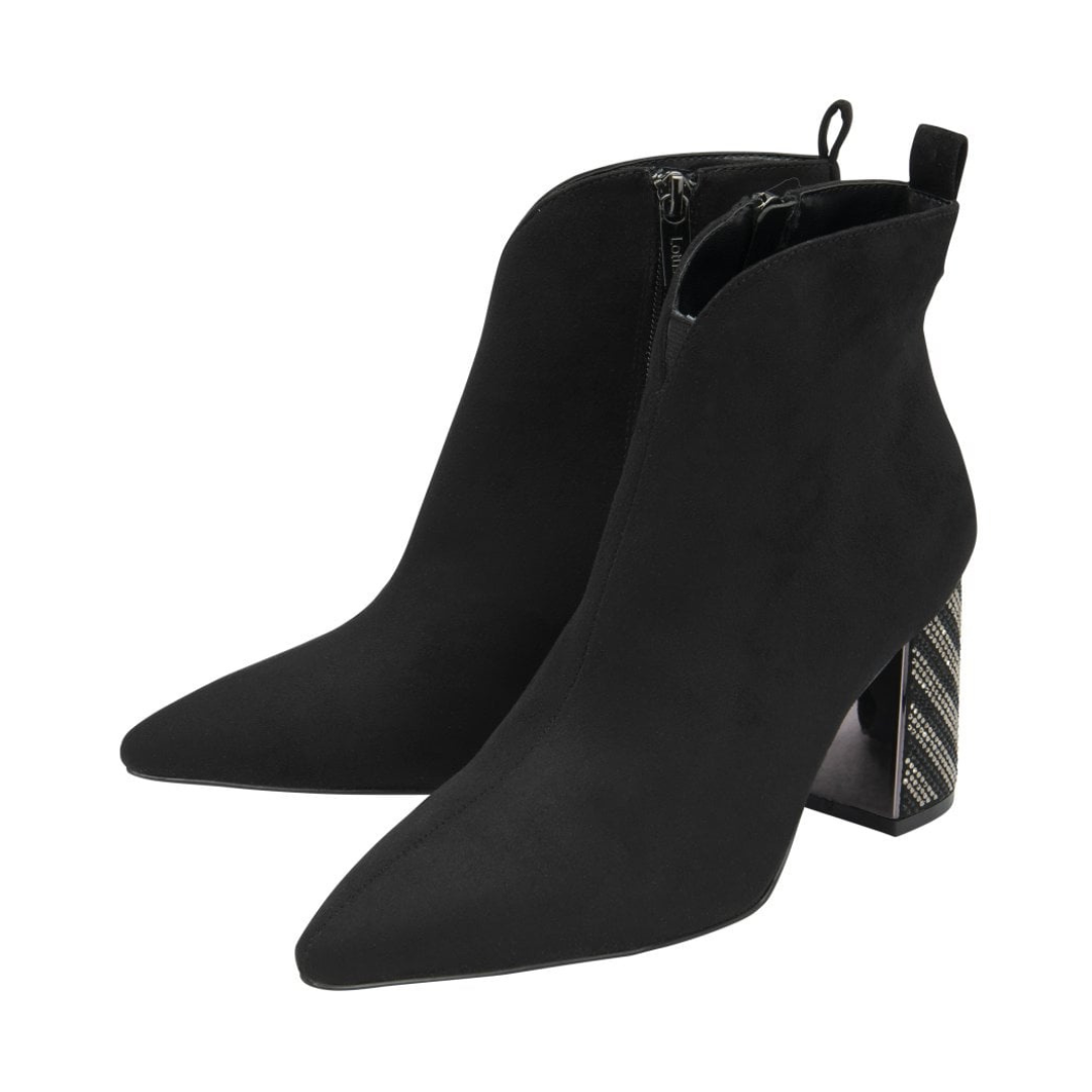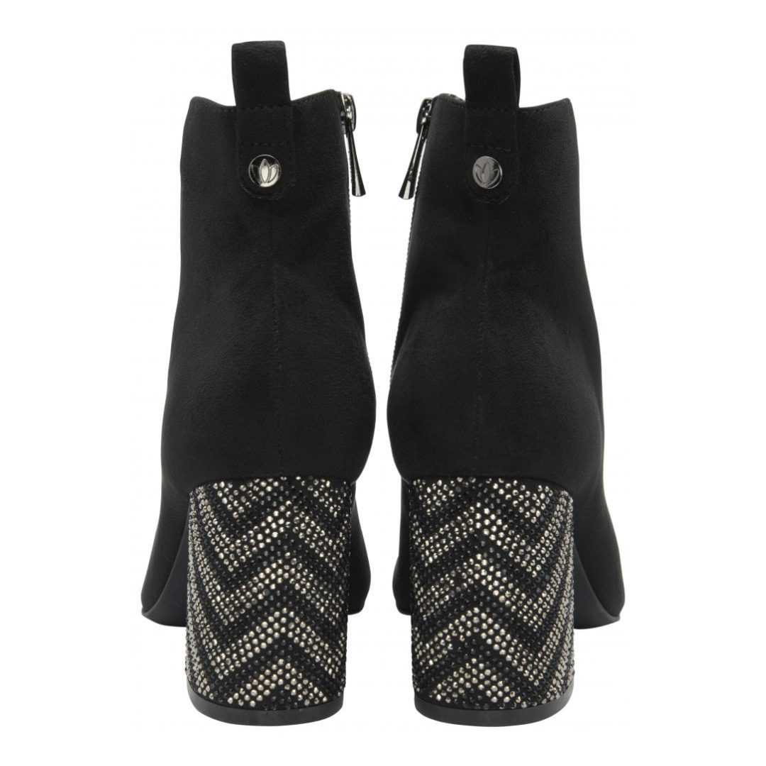 If you’re looking to enhance your looks with a dazzling style that will turn heads, then look no further than the Lotus Lori ankle boot. The 8cm block heel on this women’s pointed toe black ankle boot is gloriously embellished with diagonal stripes of contrasting diamantes that sparkle and catch the light beautifully.