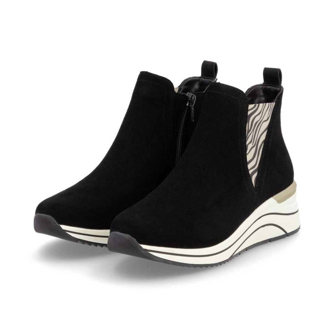 Elevate your style with the Remonte D0T75-03 wedge heel boot! Designed with a striking zebra style side panel and convenient zip fastening, this boot adds a touch of wild flair to any outfit. Step out in confidence and make a bold statement with these fashionable and functional boots.