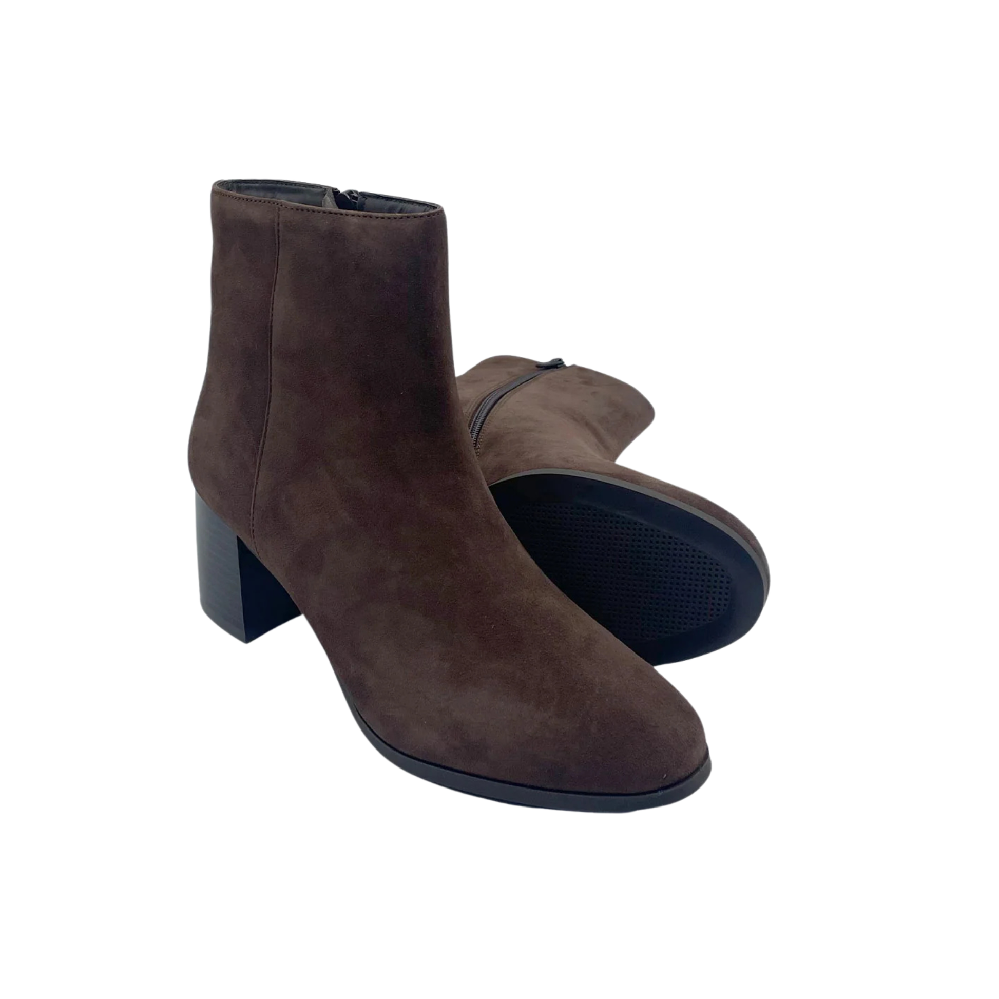 The Cead Suede Ankle Boot in cigar features a medium block heel that offers stable support and a zip closure for easy wear. Crafted with a flexible sole, this boot provides comfortable movement throughout the day. Its sleek suede finish adds a refined touch to any outfit.