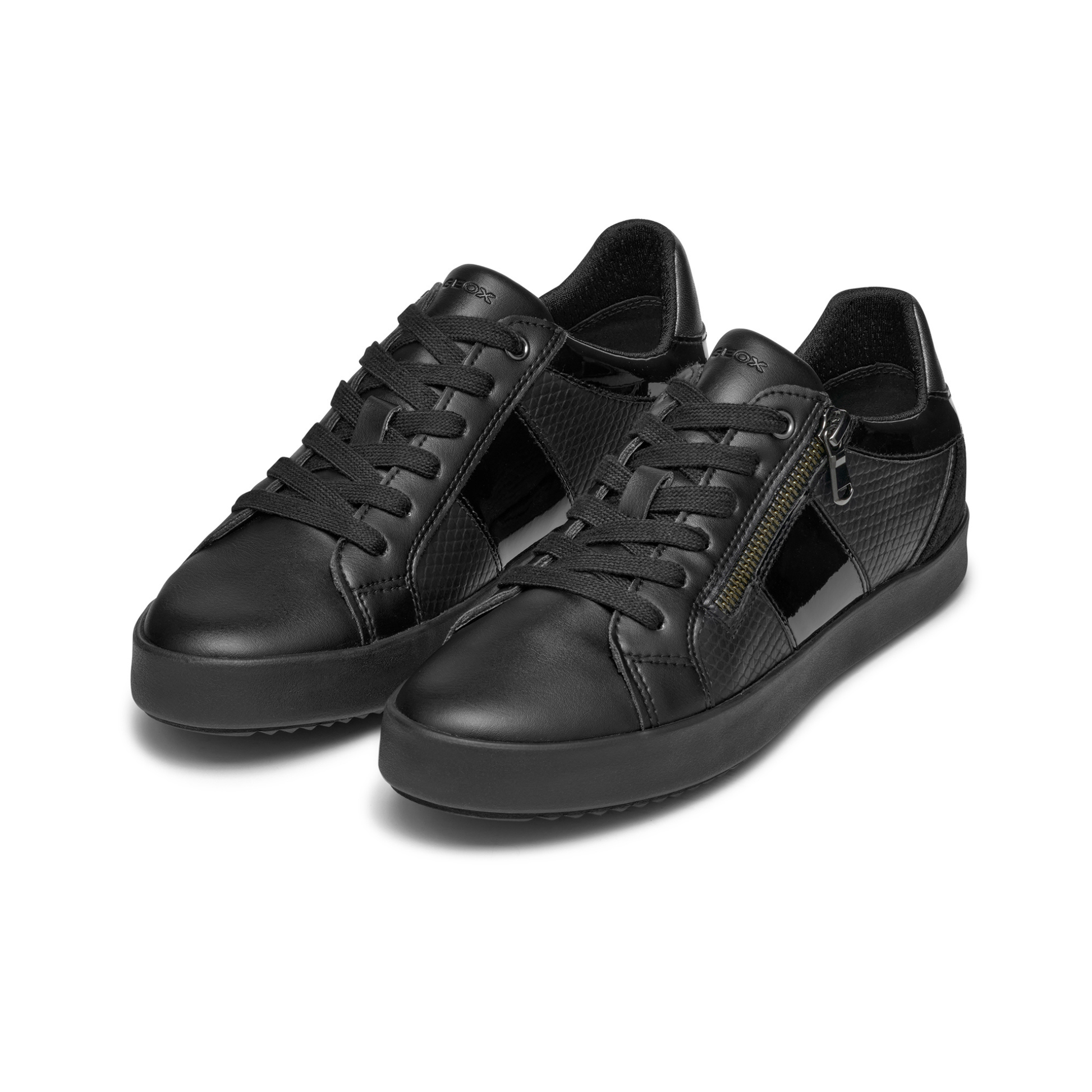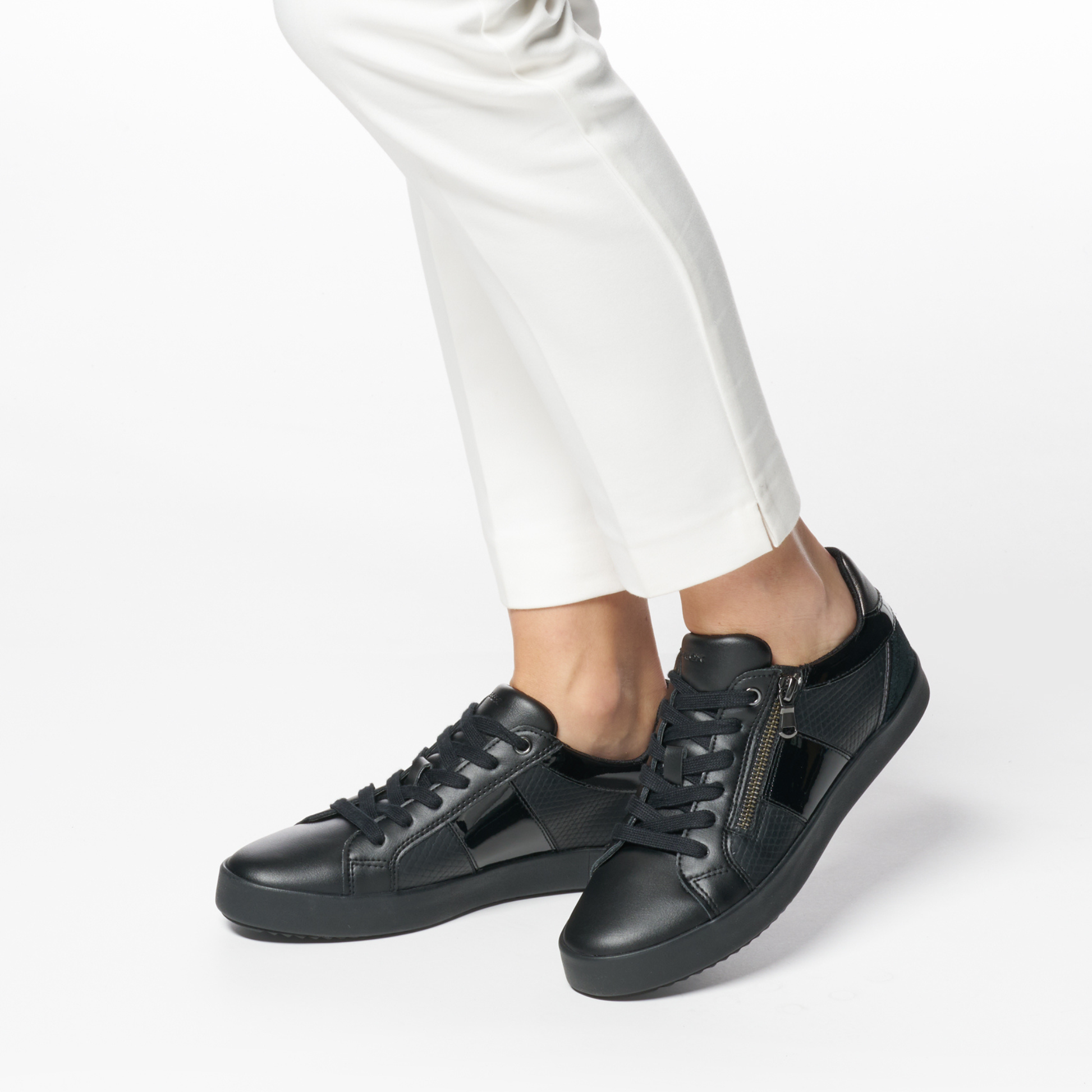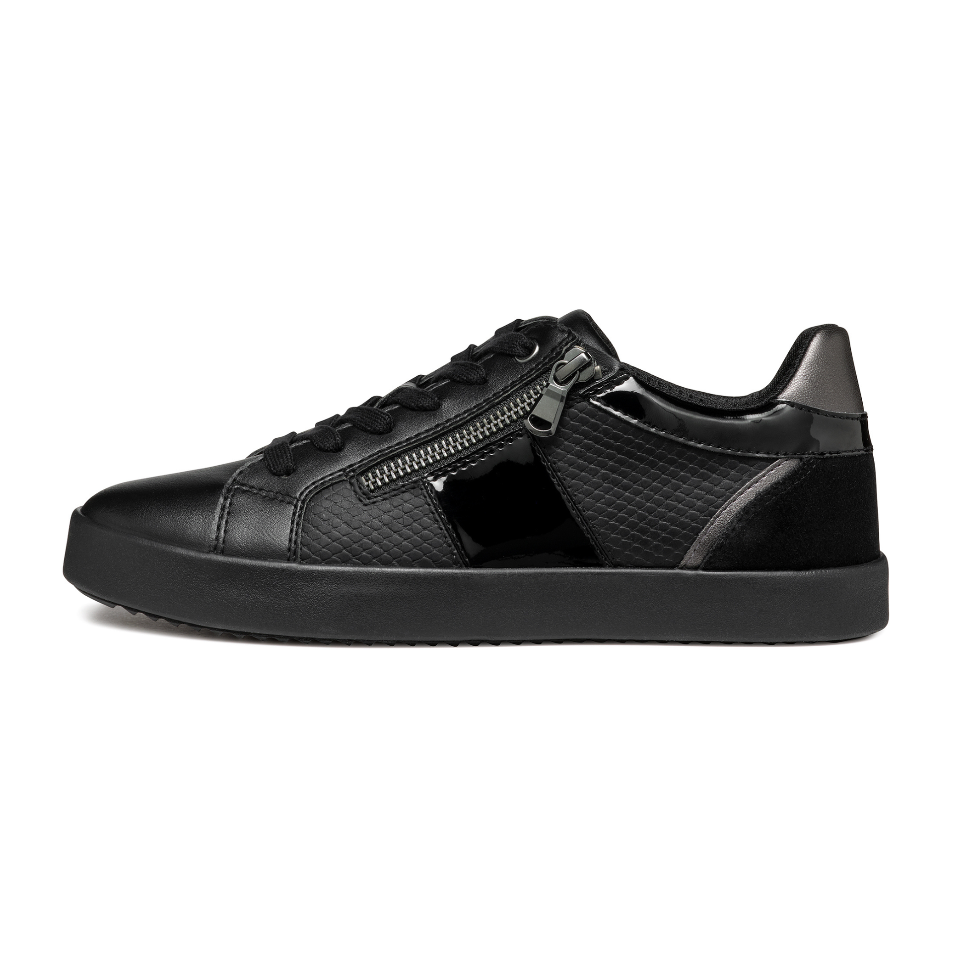 Comfortable breathable low-cut sneaker for women fitted with a practical side-zip closure. This minimalist black version has been crafted from suede and a printed leather-effect material and emanates sporty-chic overtones. Blomiee is an essential addition to any casual everyday wardrobe and will lift leisuretime outfits with a dash of energy.