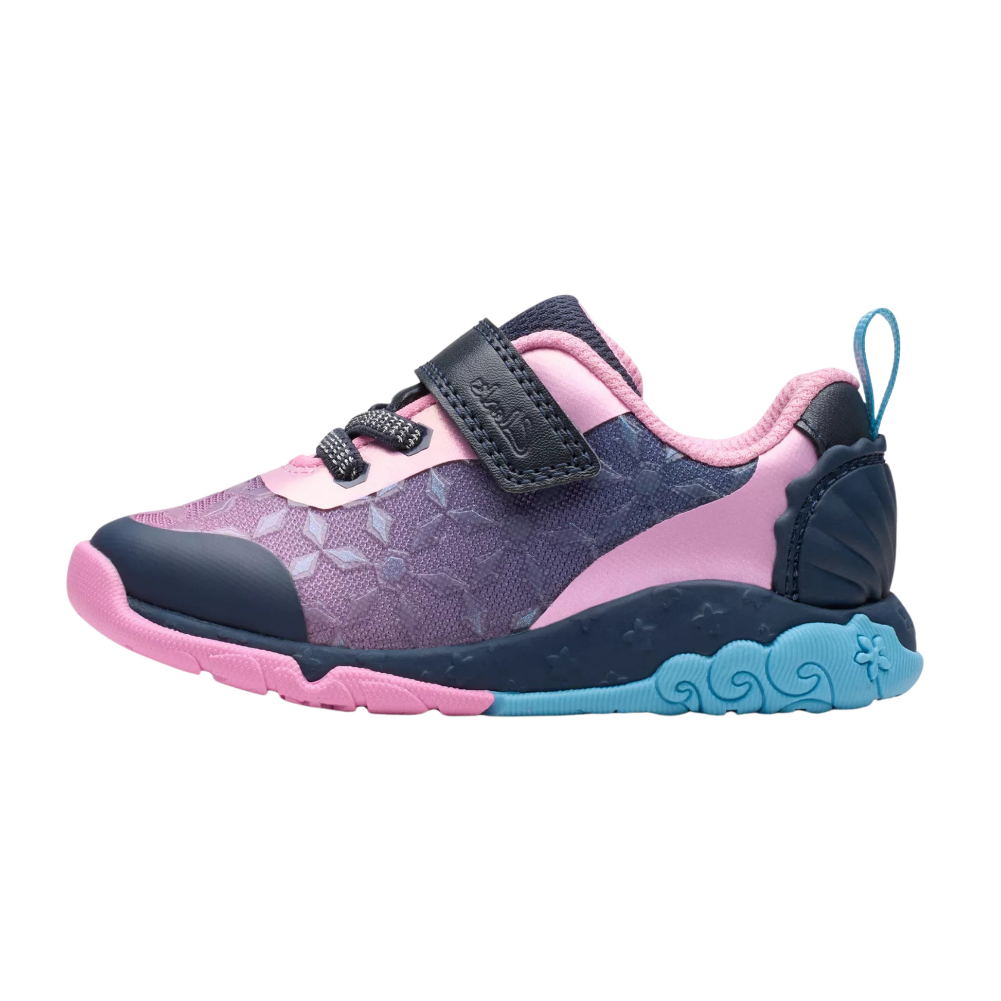 The Clarks Tidal Trail features a convenient velcro strap that ensures a secure and adjustable fit, making it easy to put on and take off. Designed for comfort and practicality, this shoe supports your active lifestyle with reliable fastening and everyday ease.