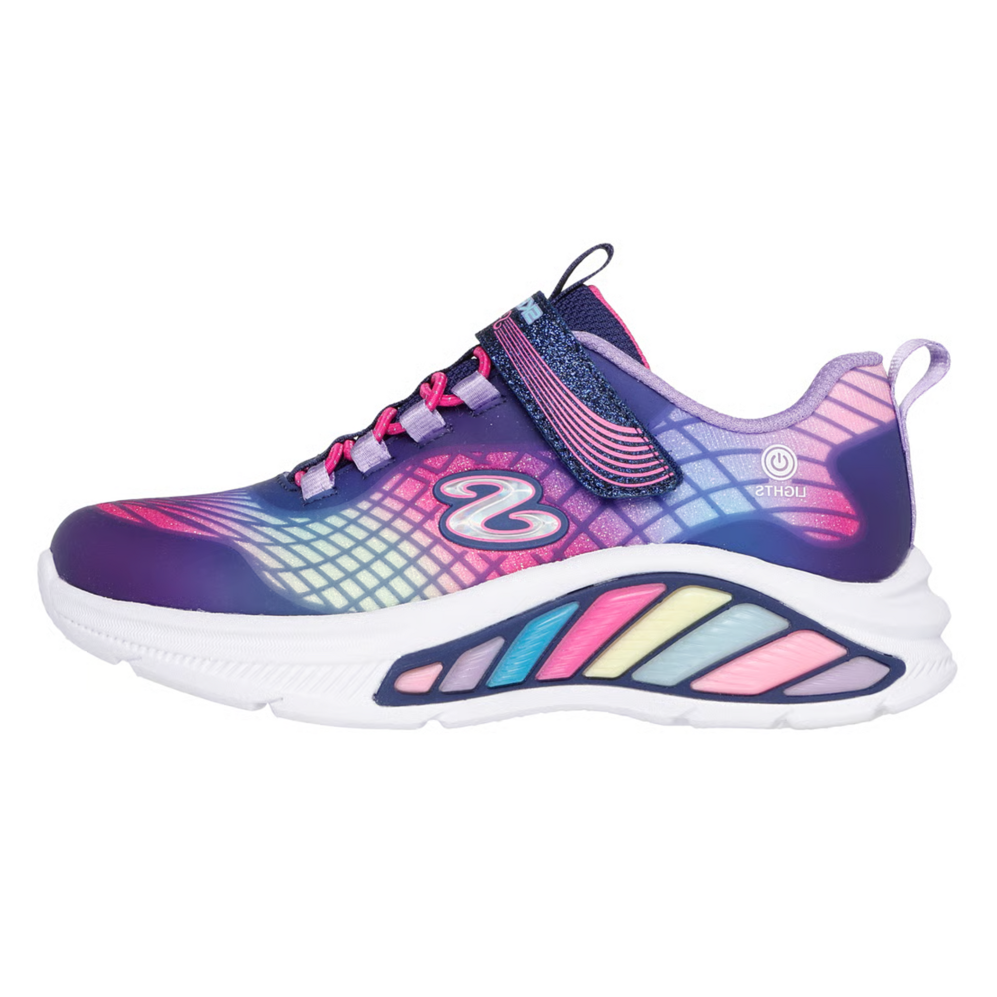 Playful lights and colorful fun combine in Skechers Rainbow Cruisers - Rainbow Reflectin. This lighted sneaker features an ombre glitter mesh and synthetic upper with stretch laces and Skechers adaptive closure.