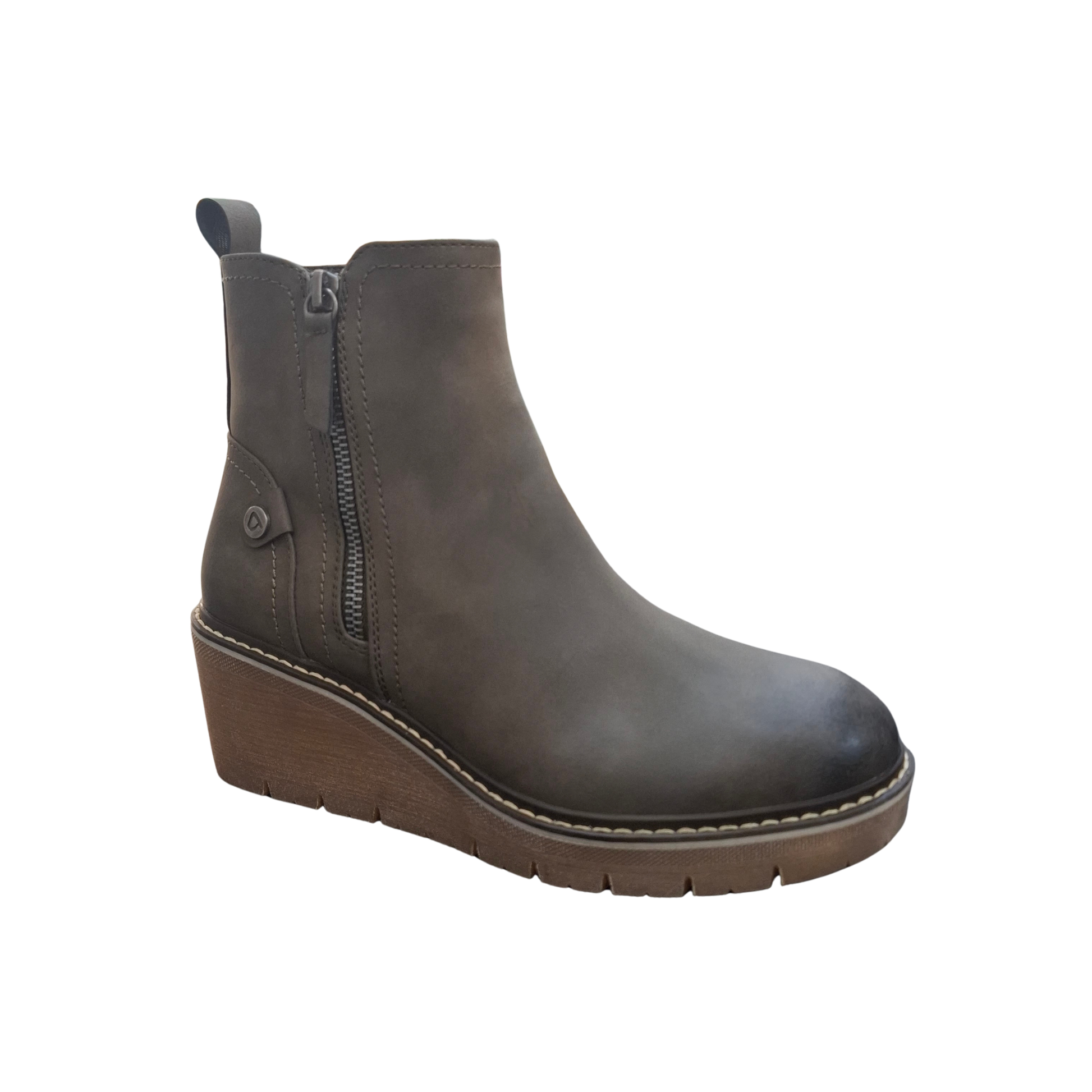 The Redz 8AZ12 wedge boot combines style with everyday practicality. Featuring a convenient zip-up design, this boot slips on and off effortlessly while maintaining a polished look. The wedge heel provides comfortable elevation and stability, making it ideal for all-day wear. Whether you're heading to work or out for the evening, this versatile boot adapts to your lifestyle with ease and confidence.